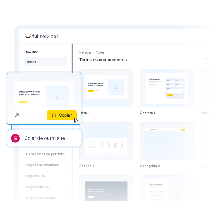 Antes eu começava cada projeto do zero. Agora, com os blocos prontos da Full Services, monto tudo muito mais rápido e com qualidade profissional.