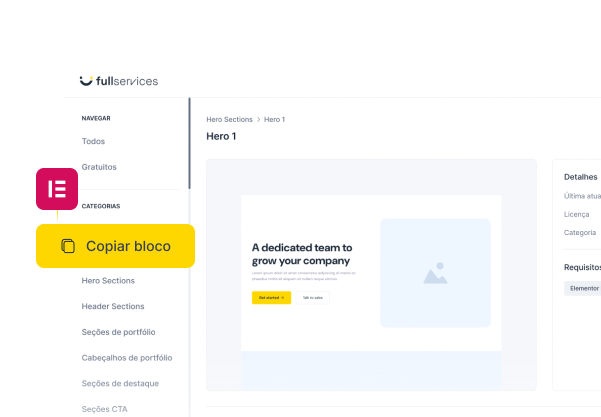 A biblioteca da Full Services virou essencial no meu fluxo de trabalho com Elementor. A variedade de blocos e a compatibilidade são impecáveis.